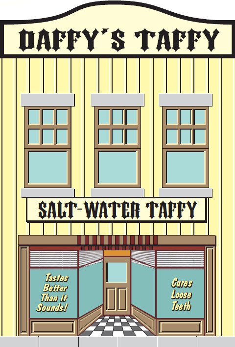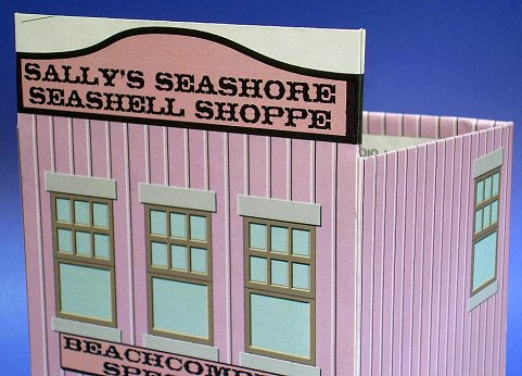 Like the original Building Tinplate Storefronts project, this project was inspired by a series of candy containers that were made in the early-to-mid 1900s by West Brothers. Each container included a glass full of candy that you could see through the house's "windows." A photo of the one of the original tins is at the left. If you sign up for our Trains-N-Towns(tm) newsletter, we'll let you now when we create and upload more storefronts or other projects you might find helpful. New for 2013! Daffy's Taffy Store - We've added another building for our loyal readers and builders. Surprise: It looks a lot like the other buildings. :-) but it will give you an excuse to make your seashore village a bit bigger. And don't forget that we have more buildings, as well as accessory projects you can use to "spruce up" your village on our Sandy Shores page. Building Seaside Store Fronts - from Big Indoor Trains(tm)After Paul and I started creating our first Tribute to Tinplate(tm)" buildings, we both started combing the Internet for photographs of worthwhile projects. Once we got started with storefronts based on the West Brothers' candy boxes, it wasn't hard for Paul to keep imagining new versions. Paul envisions these buildings as a relatively simple addition to our Sandy Shores beachfront-style structures and accessories. Or they might suit the needs of a person who likes to keep the same tinplate-style village set up year-round but likes the idea of seasonal adjustments.The only real difference between building these houses and our original Tinplate Storefronts is in the base. Instead of a a sidewalk/curb appearance, I've used popsicle sticks and sand to provide a boardwalk appearance. What You Will Need