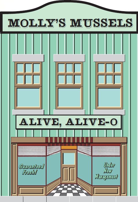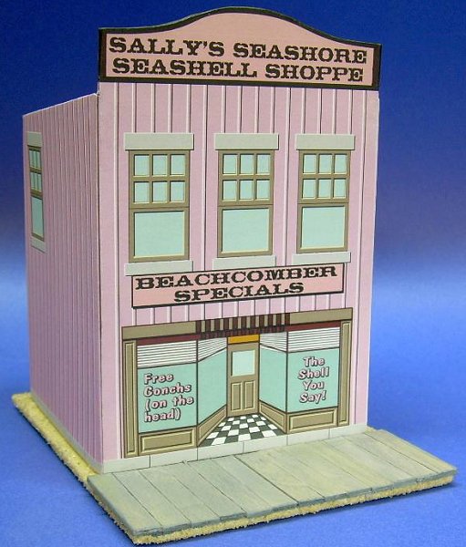 Store Front GraphicsTo help you decide which pieces to start with, I've supplied medium-resolution jpeg versions of the building faces. If you click on the little thumbnail, you'll see a version big enough to see clearly. However for the actually project, please download and print the pdf versions from the text boxes below the thumbnails.