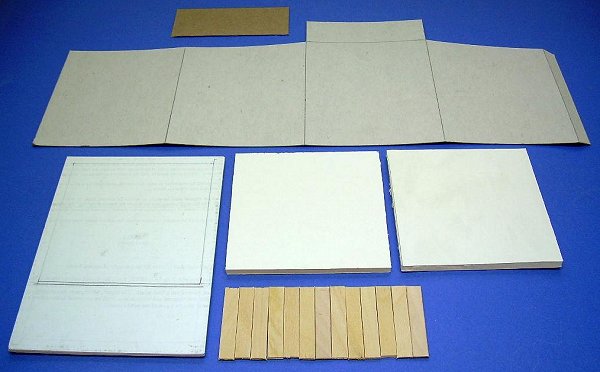 Building a "Mockup"You will save time and sanity in the long run if you print the graphics in low-res B&W first to make certain that the are the right size for the plans you have printed out and that they are the right size to go with the rest of your equipment.First, make certain that the plans you have printed are the same size as the graphics you have printed. Sadly, it is very easy to download all the right graphics, then click the wrong button (such as "fit to page") when you go to print. Worse yet, a few printer drivers make all of those decisions for you unless you click on the "advanced" button or some such. As silly as this step may sound, use cheap paper to print the plans, then print the graphics in draft mode in black and white (to save toner cartridges). You can try holding both sheets up to the light, but sometimes it's hard to get a complete "picture." Remember, when you score and fold the frame pieces, the actual structure should be a bit wider in each direction than the pieces you cut out, because you need to compensate for the thickness of the cardboard you are using. Paul's wall graphics extend the wall pattern beyond the fold lines to compensate for any minor differences, but don't count on that compensating for any major discrepancies. The best way to be sure you have plans in the same scale as your graphics is to fold the graphics along the fold lines, then cut them out and hold up to the frame pieces. Again, the frame should be slightly smaller, especially horizontally. If it isn't you should adjust the size when you transfer the plans to the card stock. Mismatched sizes between graphic and plans is a problem that is much easier to head off than it is to solve once you've cut out the building frame. Cutting and Scoring the Frame Pieces![]() Now it's time to temporarily fold the B&W graphics around the walls as a "sanity" check. If it helps you to actually put one together this way, go for it. Engineers have a saying "build one to throw away, you will anyhow."