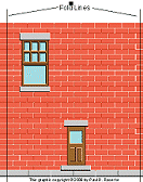 Because I didn't cut the crest's shape out, the building's crest looks a little funny at first. I could have cut it out ahead of time, I suppose, but then I'd have an extra variable while trying to align the graphic for the store front with the left and right edge. Or worse yet, I'd discover that I had cut the crest shape wrong and have to start a building all over again. Trimming the CrestWhen the glue for the front has dried completely (meaning overnight at least), use a very sharp Xacto-style knife to trim the crest to match the shape of the graphic. Don't rush this job or try to cut all the way through both layers of cardboard on the first pass. Instead, make many light passes.