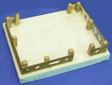 Cut the Base and Fence - For this project, I cut the base and fence out at the same time. The base is made from heavy corrugated cardbard, the kind they use in big boxes. The fence pieces are made from fine corrugated stock, like that from the small express mail boxes you get at the post office. The same kind of fence can also be cut from heavy card stock such as back of a writing tablet. If you wish, you may use different materials for the fence, such as a miniature wooden snow fence from the craft store or a rustic rail fence you make from twigs.