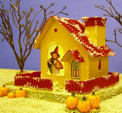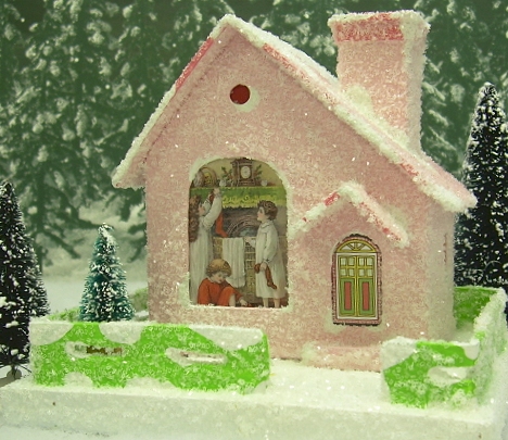 If you'd like me to help you design and/or build a special vintage pasteboard house for you, or if you have any questions at all, please see my site, LittleGlitterHouses.com for more information.