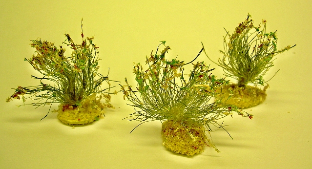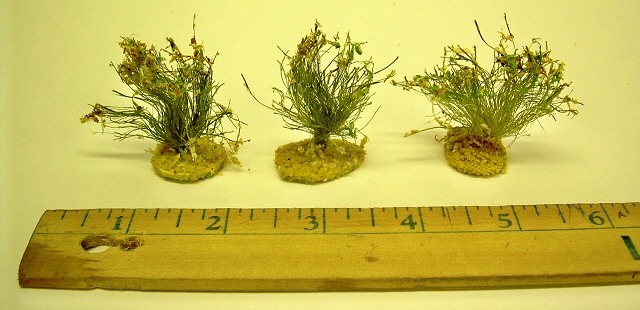 Note from Editor: Glitterhouse designer/builder Howard Lamey created these "sea grass" clumps to go along with a lighthouse project we are working on. This is how he explained this fun and simple project to me. Modeling Sea GrassI know that this technique is not new, but it works, and Paul tells me it is worth explaining to our readers.Along most beaches on the Atlantic coast, you'll see one species or another of "sea grass." It's no fun to walk on barefoot, but it is about the only thing that will grow in that environment, and its roots help protect the beach from being washed out to sea during rough weather. It also creates a habitat for a number of bird species you seldom see anywhere else. Near your display village structures or on your indoor railroad, it adds inexpensive charm and texture to any seaside scene. Materials
