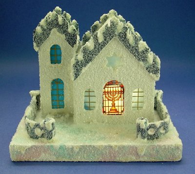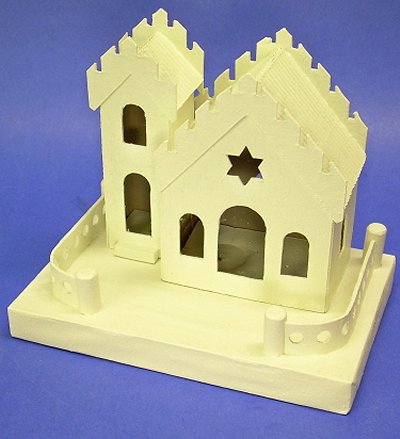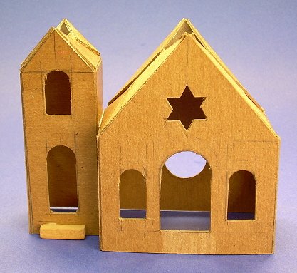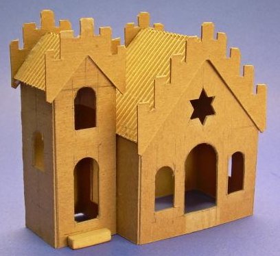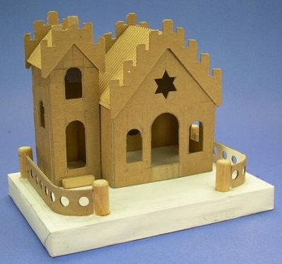 In 2008, I realized that, while every commercial Christmas village includes a church (or several), our little towns are universally missing another structure that is an important part of many communities - the synagogue. I suggested the project to Howard too late for last year, but he has come up with an attractive project for 2009.