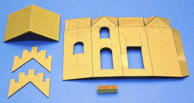 Cut the Foundations - You can use scraps of foam core board or stiff corrugated cardboard, since the edges won't show. Don't glue them down until you have assembled the building and tower - the fit needs to be a bit loose so the foundations don't exert lateral pressure on the structures' seams.